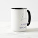 Celebrate the compassionate, artistic, and intuitive soul of Pisces with this premium two-tone mug. The design features the flowing Pisces constellation in minimalist blue line art, elegantly displayed on a clean white exterior. The sophisticated black interior and handle provide a grounded contrast to the dreamy celestial design.