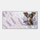 A charming custom phone holder featuring a hand-drawn Miniature Pinscher named BoBo, surrounded by soft lavender blooms for a unique and elegant look.