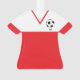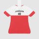 Personalized soccer jersey ceramic ornament with player name and number space.