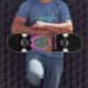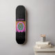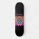 A bold in your face edgy day of the dead skateboard personalized with painted sugar skull in orange, turquoise and hot pink, on a chalkboard background with a quirky font.