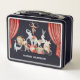 Step right up for a dazzling display of circus fun with this charming watercolor metal lunchbox! Featuring a vibrant collection of performing animals like a juggling elephant, a balancing lion, and a unicycling bear, all set against a dramatic stage with red velvet curtains, this lunchbox is sure to bring smiles. The deep navy background and delicate watercolor style create a whimsical and nostalgic feel, perfect for little ones. It's durable and spacious, ideal for carrying lunches, snacks, or treasures for any adventure.