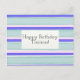 Bonne carte d'anniversaire joyeuse avec rayures pastel rose, bleu et blanc. Le texte étiquette est personnalisable. Conçu avec un sourire par iolantesdesigns : -)!