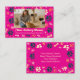 Ce carte de visite est conçu pour les propriétaires de traiteurs et d'embarcations qui souhaitent apporter une touche personnelle. La carte comporte un grand cadre photo personnalisable à l'avant, vous permettant de présenter votre chatterie, votre personnel ou vos chatons. Le design comprend un motif ludique d'empreintes de pattes et d'os colorés, créant une atmosphère chaleureuse et conviviale. Il est entièrement personnalisable, avec des espaces dédiés pour le nom de votre succursale, numéro de téléphone, site Web, email, et informations sur les médias sociaux. Cette carte polyvalente est parfaite pour se connecter avec les clients et partager votre passion pour les chats.