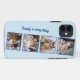 Ce coque romantique, cool et moderne conviendra à tous ceux qui souhaitent porter avec eux leur être cher. Il dispose de quatre photos et photos de famille personnalisables. Il affiche également un endroit pour un texte monogramme à côté des photos sur, arrière - plan bleu. N'hésitez pas à utiliser ce modèle pour ajouter des photos de toute sorte. Vous pouvez utiliser votre créativité ici.
