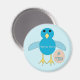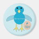 Cet aimant amusant présente un dessin animé mignon d'un poussin bleu. Le poussin a un ventre bleu pâle et des ailes bleues foncées et la tête avec un bec et des pieds jaunes. À côté de la poussette se trouve un petit oeuf. Il y a du texte personnalisable pour que vous puissiez personnaliser ce design avec l'âge et le nom du destinataire.