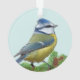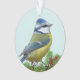 Photo d'oiseau bleu et jaune personnalisée sur ornement bleu clair. Idéal pour tous !