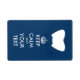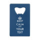 Personalisé gardez calme et votre ouvre-bouteille de texte. Taille de la carte de crédit. Vintage keepcalmandcarryon typographie design avec petite couronne. Faites votre propre drôle, gardez votre calme et continuez à parodier. Gardez calme et buvez de la bière. Gardez le calme et la fête. bleu marine ou couleur arrière - plan personnalisée. Une idée cadeau cool pour les hommes et les femmes qui aiment boire de la bière.
