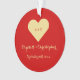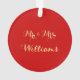 Personnalisé, personnalisé, beau, fêtes de noël rouge, élégant, faux or typographie / script, coeur doré, monogramme, couple marié, mari & femme, première fête de noël gardien d'un ornement acrylique. Pour customiser, il suffit de taper le nom du mari et de la femme mariés, l'année, les initiales du couple, et le nom de famille / nom de famille du couple. Fait un merveilleux gardien pour la mariée et le marié, couple marié.