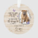 Rappelez-vous votre animal de compagnie bien-aimé avec cet ornement de décoration de Noël en mémoire des animaux, avec un message sincère : "Ici, le vent et Pense à moi dans ton cœur, je serai toujours là". Le design comprend un chien dans un cadre floral. Ce souvenir attentionné est une façon touchante d'honorer leur mémoire pendant les vacances ou tout au long de l'année. Il est parfait pour tous ceux qui ont perdu un ami à quatre pattes, apportant réconfort et chaleur avec son message d'amour. Accrochez-le à votre sapin ou exposez-le chez vous en souvenir constant de la place spéciale de votre animal dans votre cœur. Personnalisez avec votre photo préférée de votre animal, son nom et sa date en cliquant sur "Personnaliser ce modèle".