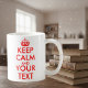 Personnalisé gardez le calme et vos tasses de café des textes. Créez votre propre tasse drôle de boissons de parodie de Keepcalm. Modèle rouge vintage de typographie avec la couronne. Customisez-la avec votre texte. Maintenez calme et buvez du café. Maintenez calme et buvez du thé. Faites votre propre double conception dégrossie. L'idée mignonne de cadeau d'humour pour la fête des pères, le jour de mères, l'anniversaire, l'employé de bureau, le patron, le professeur, la maman et le papa etc. changent la quantité pour obtenir le prix le meilleur marché par tasse. En outre disponible en tant que le grands extra large et version de voyage.