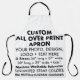 Personnalisé Grand tablier tout-dessus imprimé, long de 34 po x large de 27 po, est 100% souple et durable machine lavable polyester avec des options de couleur de bracelet tablier illimité. Des rabais importants pour les achats multiples en vrac disponibles. Concevez, créez, fabriquez vos tabliers de haute qualité à partir d'un modèle vierge. Customisez votre choix de tablier avec une photo, un logo, un monogramme, une image ou un design, et ajoutez votre propre texte. Cette tablette d'impression de haute qualité de bord à bord est disponible en trois dimensions : grande - 34 po de long x 27 po de large, moyenne - 30 po de long x 26 po de large, ou petite - 20 po de long x 24 po de large pour les enfants. Un tablier sur mesure fait un grand cadeau personnalisable pour un chef, un cuisinier, pour maman ou papa, une nouvelle maison, Noël, ou pour n'importe quelle boulangerie ou entreprise alimentaire. Personnalisez les vêtements du personnel de votre restaurant, bar, bistrot ou café avec des tabliers de logo personnalisés de qualité.