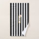 Serviettes de bain personnalisées rayées en noir et blanc, avec une jolie plaque de nom en écriture noire encastrée dans une bordure dorée avec un rose de pêche d'été. Vous pouvez personnaliser le nom dans un texte élégant et changer les couleurs pour en faire un cadeau parfait pour vous-même ou un cadeau spécial pour un ami ou un membre de votre famille.