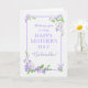 Une jolie carte de voeux pour la Fête des Mères pour que vous personnalisiez avec le nom du destinataire, avec une bordure mauve avec des grappes de fleurs phlox bleues et mauves dans les coins. Les fleurs sont peintes à la main dans des aquarelles, à partir de photos des fleurs Phlox dans mes jardinières. Le message d'accueil de couverture dit : 'Je vous souhaite une JOLIE JOURNÉE DE LA MÈRE (Espace pour vous d'ajouter le nom).' en lettres mauves, sur un arrière - plan blanc légèrement texturé. Le message intérieur est juste une suggestion que vous pouvez facilement changer ou supprimer si vous le souhaitez.