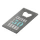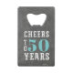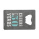 Créez des fêtes d'anniversaire personnalisées cool avec ces ouvre-bouteilles thématiques "cheers". La conception de l'anniversaire de jalon comporte "des réjouissances et des bières jusqu'à xx ans" en lettres blanches et turquoise sur un arrière - plan de tableau noir gris. Ajoutez l'âge de l'invité d'honneur ; exemple illustré pour un 50e anniversaire. Ensuite, personnalisez l'envers avec l'occasion et la date de fête ou votre message personnalisé.
