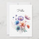 Une illustration aquarelle de jolies fleurs en turquoise, pêche, rose, violet, bleu. Cette impression botanique est parfaite pour un simple salut Hello, mais vous pouvez changer le texte à votre salutation préférée. L'IA a aidé graphisme acheté à des fins commerciales. Oeuvre : DreamCafeArt