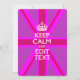 Votre personnalisation Keep Calm vous dit sur un décor de prise en union rose vif. Un style personnalisé Keep Calm en disant sur un cadeau de nature. Essayez humour ou fantaisie sur vos mots créatifs sur deux lignes de texte modifiables. N'oubliez pas d'utiliser les lettres CAPITAL pour obtenir les meilleurs résultats. Les motifs de broderie sont disponibles dans une large sélection d'options de couleurs populaires. Utilisez le lien "Demandez à ce concepteur" pour nous contacter avec vos demandes de design spécial ou pour obtenir de l'aide sur vos besoins de personnalisation.
