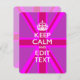 Votre personnalisation Keep Calm vous dit sur un décor de prise en union rose vif. Un style personnalisé Keep Calm en disant sur un cadeau de nature. Essayez humour ou fantaisie sur vos mots créatifs sur deux lignes de texte modifiables. N'oubliez pas d'utiliser les lettres CAPITAL pour obtenir les meilleurs résultats. Utilisez le lien "Demandez à ce concepteur" pour nous contacter avec vos demandes de design spécial ou pour obtenir de l'aide sur vos besoins de personnalisation.