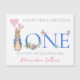 Customisez facilement ce Pierre le lapin design de premier anniversaire avec le nom d'un enfant. Salutation d'anniversaire : Salutation facultative à l'envers que vous pouvez faire votre propre.