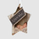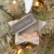 Ajoutez la photo de votre bébé à cet adorable ornement acrylique en forme d'étoile dans la zone de personnaliser. Sur le dos se trouve une jolie parties scintillant en faux et un ruban d'or et un arc.