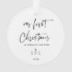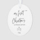 Cet ornement photo de nos nouveaux mariés de Noël présente une belle police manuscrite avec les mots "Notre premier Noël", avec les arbres de Noël sur le devant. Remplacez simplement la photo par la vôtre et personnalisez les noms et l'année. Vous ne pouvez pas modifier, modifier, déplacer ou supprimer le libellé élégant de "Notre premier Noël", les arbres de Noël, le flocon de neige, et d'autres éléments graphiques.