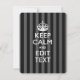 Un décor personnalisé à rayures noires tendance pour garder le calme et continuer avec style en disant sur un cadeau personnalisé. Essayez humour ou fantaisie sur vos mots créatifs sur les deux lignes de texte modifiables. N'oubliez pas d'utiliser les lettres CAPITAL pour obtenir les meilleurs résultats. Les motifs de broderie sont disponibles dans une large sélection d'options de couleurs populaires. Utilisez le lien "Demandez à ce concepteur" pour nous contacter avec vos demandes de design spécial ou pour obtenir de l'aide sur vos besoins de personnalisation.