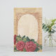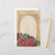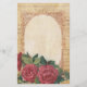 Visage dénudé avec zone d'écriture ovale bordée de dentelle vintage, notes musicales et roses rouges profondes