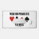 Montrez le côté probabiliste de votre joueur de pont avec ce tapis de bureau avec les quatre costumes de carte ainsi que la recommandation de pont disant "Pesez vos probabilités Jouez Pont". Faites faire aux autres une double prise avec une dose de conseil de pont sonore la prochaine fois que vous jouez pont avec ce tapis de bureau.