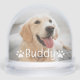 This charming dog snow globe features your pup's photo with their name in playful white script and adorable paw print accents overlaid on the image. The back displays a watercolor portrait or second photo for a lovable two-sided keepsake. A tail-wagging gift for any dog lover or a touching memorial tribute to a beloved companion. All text and photos are fully customizable.