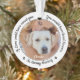 Honorer votre meilleur ami avec un ornement photo de votre animal de compagnie personnalisé. Ce souvenir unique de l'ornement de votre animal de compagnie est le cadeau parfait pour vous, votre famille ou vos amis pour rendre hommage à votre être aimé. Cet ornement commémoratif de chien présente vos photos, empreintes de pattes et Citation "Si l'Amour aurait pu vous sauver, vous auriez vécu Forever ~ In Loving Memory". Customisez avec les photos préférées de chiens ou de chats, et le nom. L'ornement est double face, vous pouvez faire 2 photos préférées, une de chaque côté. Personnalisez le nom à l'avant et les dates à l'arrière. Parfait pour un ornement commémoratif de Noël. DROIT D'AUTEUR © 2020 Judy Burrows, Black Dog Art - Tous droits réservés. Pet Memorial moderne Custom Chien 2 Photo Sympathie Ornement