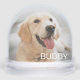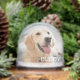 Showcase your favorite pet photo in this charming snow globe featuring their name in clean white block lettering overlaid at the bottom of the image. The back displays a second photo or watercolor portrait for a two-sided personalized keepsake. A wonderful birthday gift for dog moms, cat dads, or anyone who adores their furry best friend. All text and photos are fully customizable.