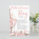 Pétales & Prosecco Blush Rose Fête des mariées Florale Planche avec détails de parties scintillant en or rose, design d'été boho, pour Anneaux de chasse de jeu