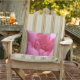 Ce charmant coussin extérieur présente une belle rosa rugosa fleurie avec juste une pointe de vert aux coins. C'est une fleur qui se répète, qui met en valeur le jardin avec sa beauté tout l'été.