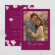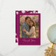 Express votre gratitude sincère avec cette élégante carte de remerciements de mariage avec des pétales roses doux et votre photo préférée en tant que couple marié. Une façon parfaite de faire connaître à vos invités combien leur présence et leur amour ont signifié pour vous. Personnalisez les noms, la date et le message pour créer un souvenir significatif qu'ils aimeront. Idéal pour les mariages romantiques, fleuris ou de couleur rose vif.
