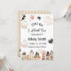 Invitation vos invités avec cette invitation éditable baby shower d'Halloween avec fantômes, citrouilles, et des maisons hantées géantes.
