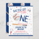 Battez et soyez prêt à faire un coup de circuit avec cette invitation de 1er anniversaire de baseball mignonne et fantaisiste ! Éclatant de charme fantaisiste et d'une palette de couleurs bleue, blanche et rouge, c'est la façon parfaite de célébrer la première année de votre petit frappeur. Avec des poppers à confettis ajoutant une touche de plaisir, cette invitation prépare le terrain pour une fête inoubliable. Invitez vos amis et votre famille à se joindre à l'excitation. Ne manquez pas cette invitation parfaite pour commencer à planifier le premier anniversaire de votre petite recrue sans vous ruiner.