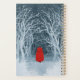 Petit chaperon rouge sur une promenade hivernale enneigée à travers les bois. Pouvez-vous voir le Big Bad Wolf hurler au loin ? Version grungy d'un tableau d'aquarelle négatif.