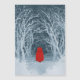 Petit chaperon rouge sur une promenade hivernale enneigée à travers les bois. Pouvez-vous voir le Big Bad Wolf hurler au loin ? Version grungy d'un tableau d'aquarelle négatif.