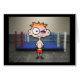 Boxeur mignon de bande dessinée avec les cheveux oranges et les shorts rouges se tenant en dehors de l'anneau avec un grand menhaden pourpre. Ce petit type est un champion dans la fabrication !