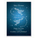 Une carte de Noël pour le petit-fils et son mari. Deux colombes des branches d'olivier de transport de paix. Les colombes sont dessinées avec un bon nombre de symboles et de flocons de neige de Noël. Les colombes volent dans un ciel bleu complètement des étoiles. Une carte de Noël merveilleuse qui sera bienvenue par votre petit-fils.