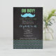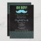 Petit homme, Oh garçon ! Baby shower Chalkboard invitation pour bébé garçon avec le design de chevron vert et bleu.