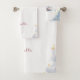 Serviette de bain super mignonne avec petit lapin blanc mignon portant une belle proue violette assise sur une belle lune avec quelques étoiles en chute d'or et quelques nuages bleus poussiéreux.