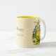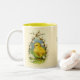 Mugs de Pâques avec un petit poussin de Pâques bébé entouré de boutons de fleurs. Texte personnalisable, plus de tailles et de couleurs disponibles !