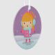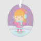 Un ornement mignon de Noël d'hiver pour des décorations ! L'ornement vient avec une petite fille habillée dans l'usage d'hiver de l'écharpe, de la veste, des gants et des silencieux confortables d'oreille. Elle patine à travers la glace avec la neige tombant à l'arrière-plan. Personnalisez le message de vacances du verso de l'ornement.