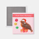 Petit oiseau de Noël sur aimant rose. Cet oiseau carol se tient sur une boîte à cadeaux près de trois boules de Noël. Bonne saison de Noël ! Le texte peut être personnalisé.