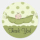 Baguette Merci mignonne avec un petit pois doux et un bébé garçon sur un arrière - plan pois vert. Un autocollant parfait pour les faveurs pour bébés ou enveloppes d'invitation sceaux & annonces de naissance! Des invitations, des timbres-poste et des notes de remerciement sont disponibles dans notre boutique à l'adresse www.celebrateitinvites.com. ©Jessica Weible