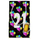 Bouquets de ballon colorés de 21e anniversaire avec tasse de bière et confettis de fête sur arrière - plan noir. La couleur Arrière - plan peut être modifiée.
