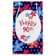 Fleurs de marguerite orange, rouge et bleu sur le motif pois de polka pour 90ème anniversaire. Numéro d'âge modifiable.