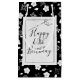 Aiguille à coudre avec fil et cadre cousu noir sur imprimé floral noir et blanc pour 40e anniversaire.