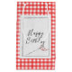 Aiguille à coudre avec fil et cadre cousu noir sur rouge et blanc en vichy anniversaire. Le texte peut être modifié.
