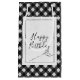 Aiguille à coudre avec fil et cadre cousu noir sur l'anniversaire en vichy noir et blanc. Le texte peut être modifié.